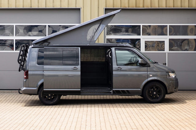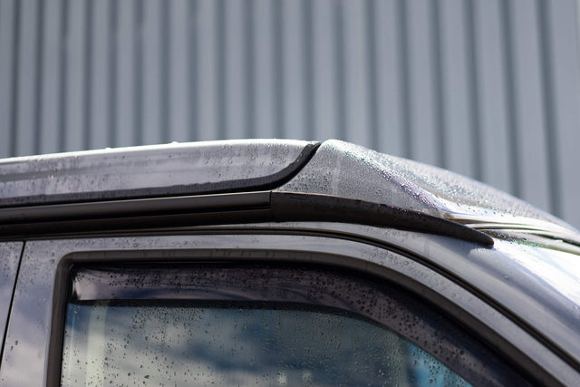 Die seitlich angebrachte Multirail dient als effektive Regenrinne und ersetzt die originalen Regenablaufrinnen deines Campers nach dem Einbau eines Aufstelldaches. Sie schützt dich beim Öffnen der Türen vor abfließendem Wasser und sorgt so für trockene Ein- und Ausstiege.