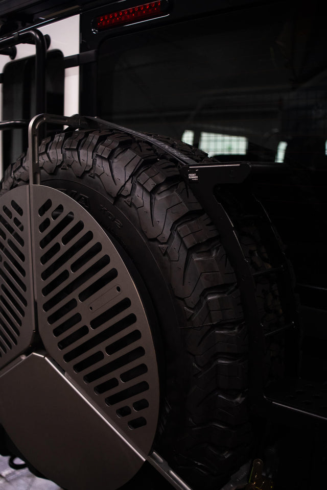Dieser geniale, aus korrossionsbeständigem Stahl gefertigte Grill, lässt sich einfach und sicher auf Deinem Ersatzrad verstauen und nimmt so absolut keinen Platz weg.